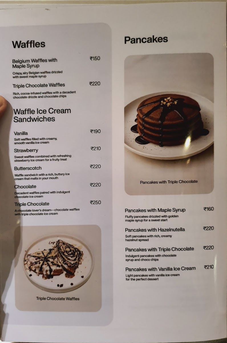 For those embracing the heat, the cafe features an array of refreshing Falooda options, including the popular Summer Falooda and Choco Brownie Falooda, both priced at ₹220. The menu also boasts delicious Smoothies like the seasonal Strawberry and Mango Avocado, each priced at ₹180.